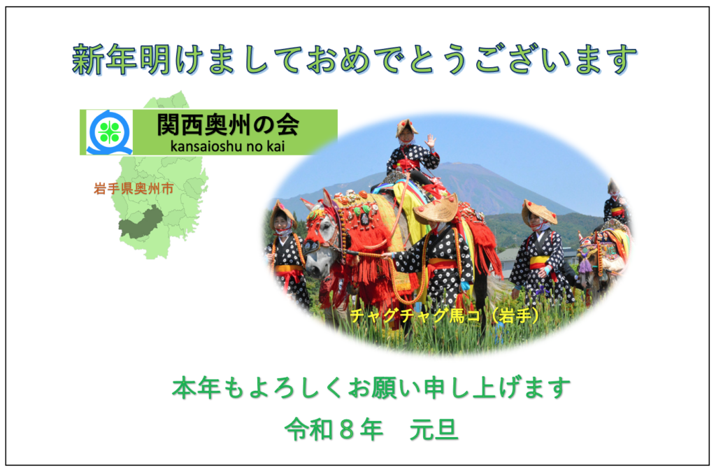 ㊗️『関西奥州の会』より ⛩ 新年明けましておめでとうございます 2026年1月1日 最終更新日時 : 2026年1月5日 t-hiroyama 2026年午年 元旦に鈴の音を響かせながら初詣するチャグチャグ馬コ 岩手県滝沢市(鬼越蒼前神社)(画像クリック) 第69回岩手日報正月読者写真コンテストで奥州市の高橋貞勝さんが特選