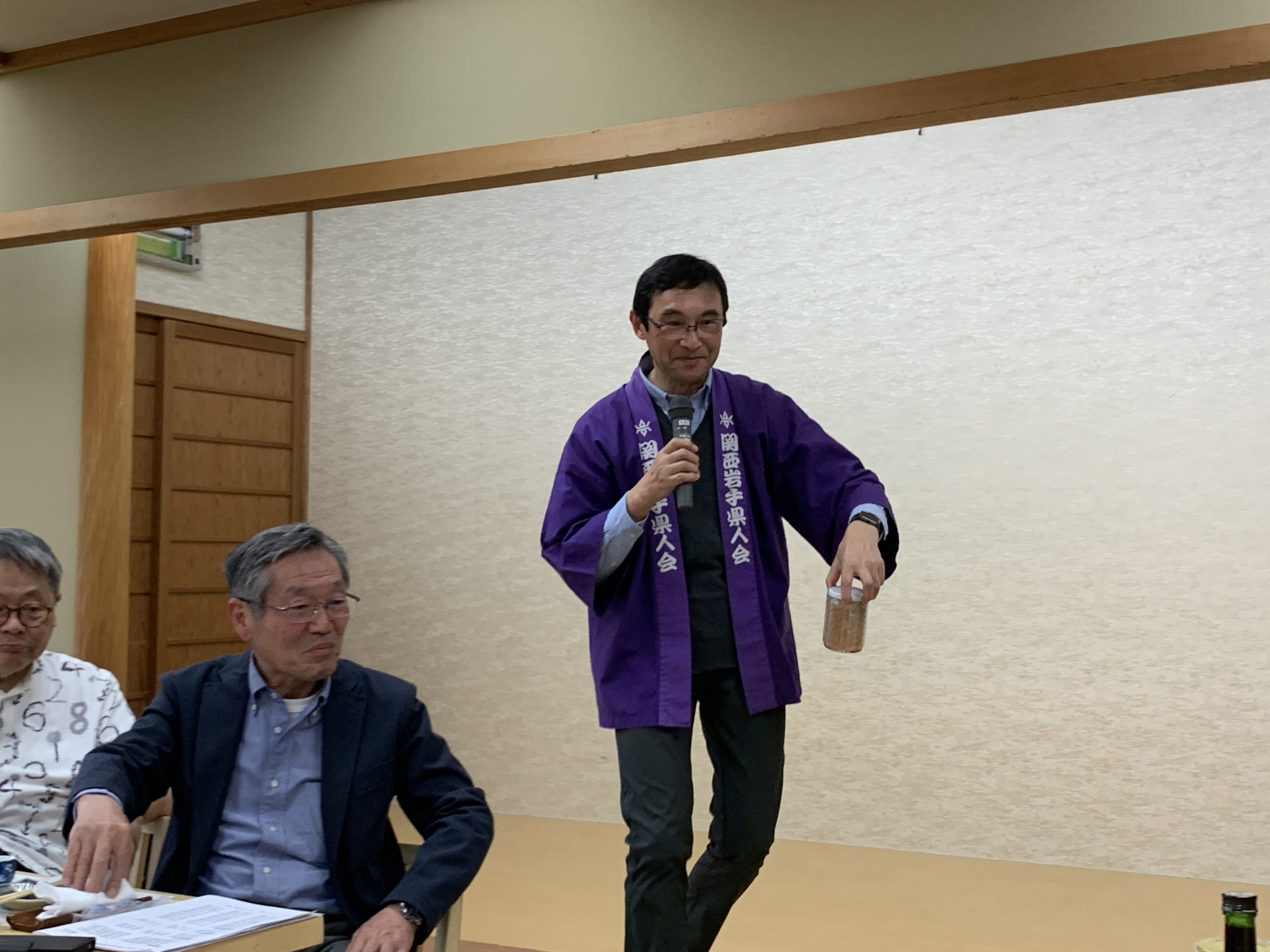 京都岩手県人会佐藤会長で開会宣言され、関西岩手県人会池田会長挨拶、菊池秀光(岩手県大阪事務所所長)様の乾杯で宴に入りました。